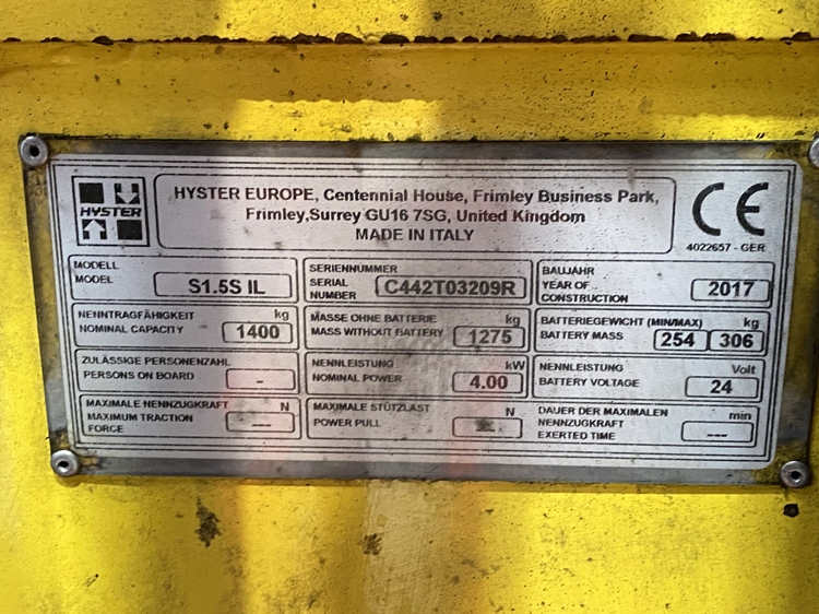 HYSTER S1.5S IL HYSTER S1.5S IL HYSTER S1.5S IL